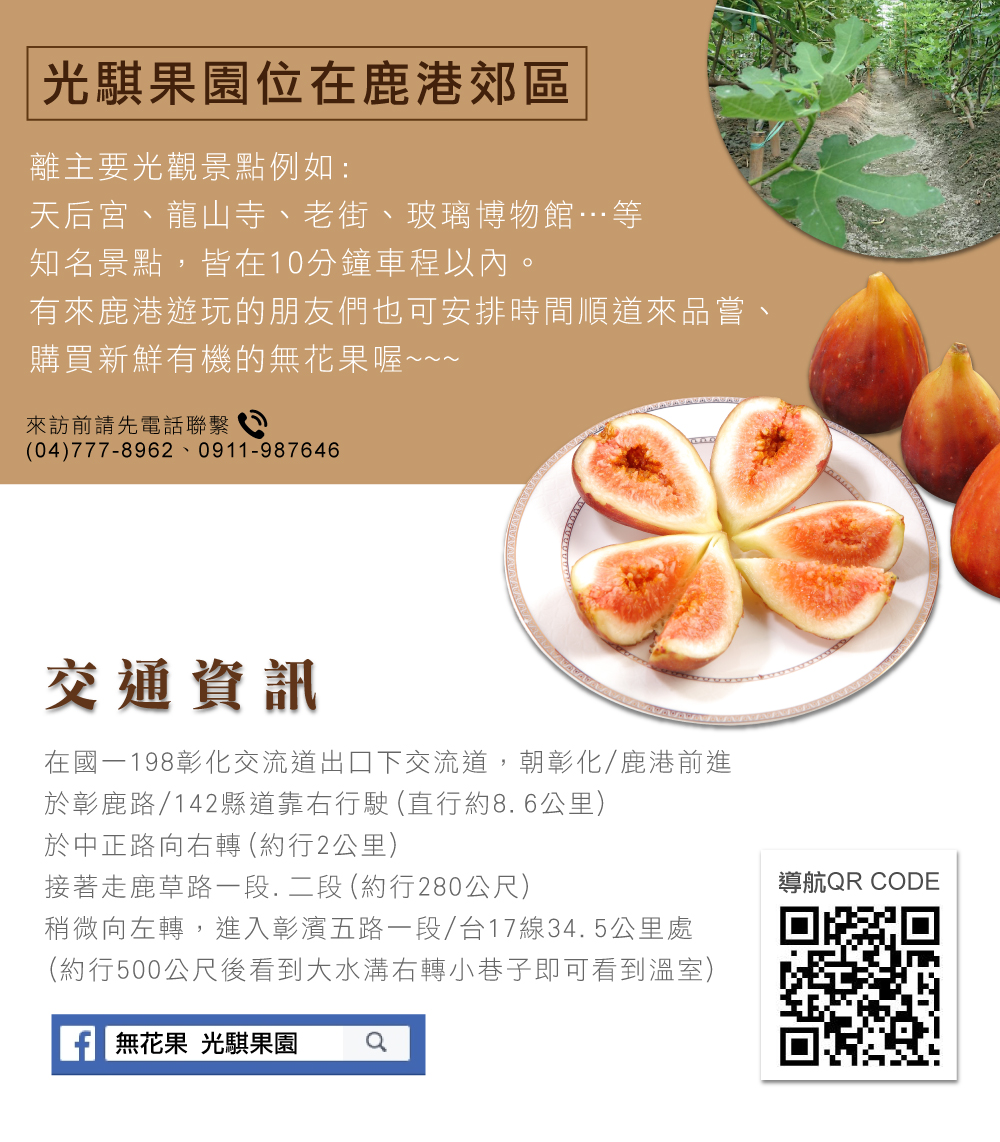 使用果園自產有機無花果,委請專業果醬代工廠製作。減糖配方好吃無負擔,滿滿的果肉好實在(130g內含2-3顆無花果;230g內含4-5顆無花果)。